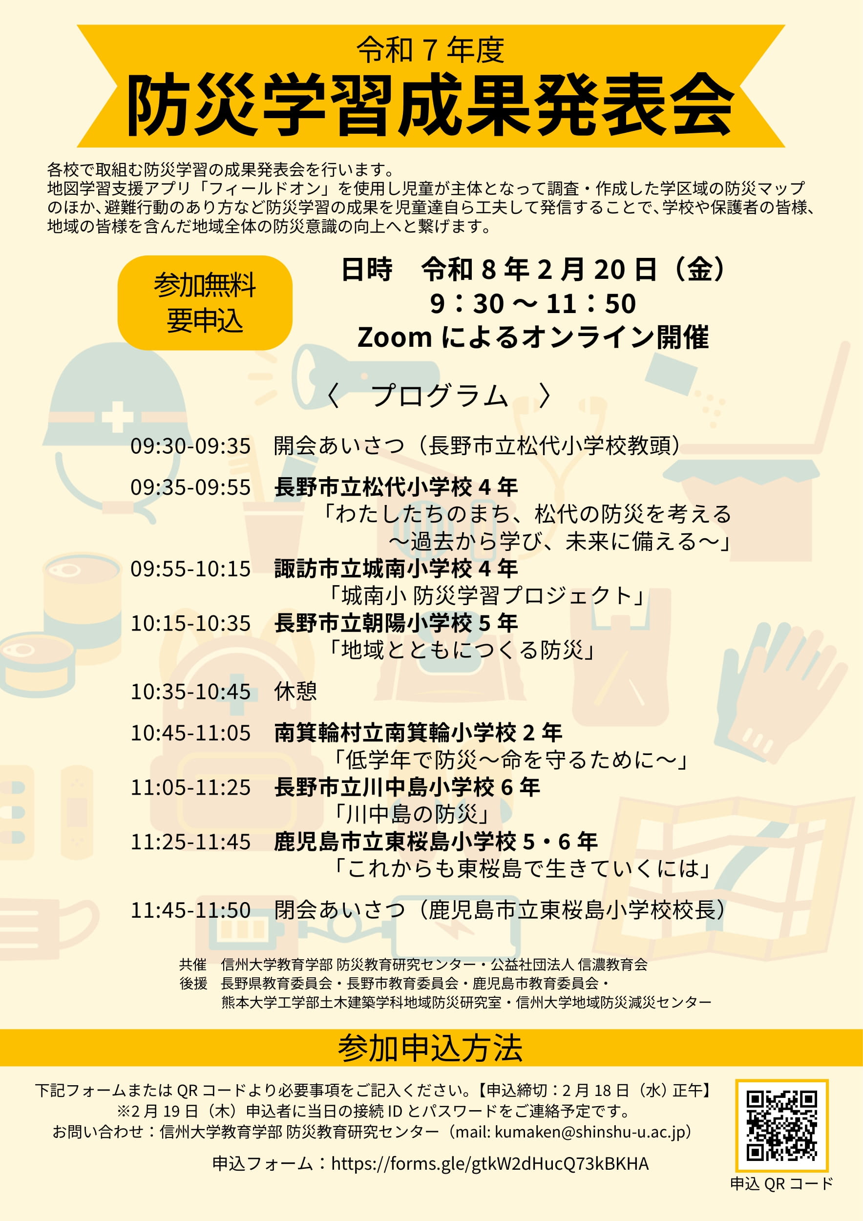 長野県内小学校と鹿児島市の小学校で取組まれた防災学習の成果を、児童自らがオンラインで発表します。