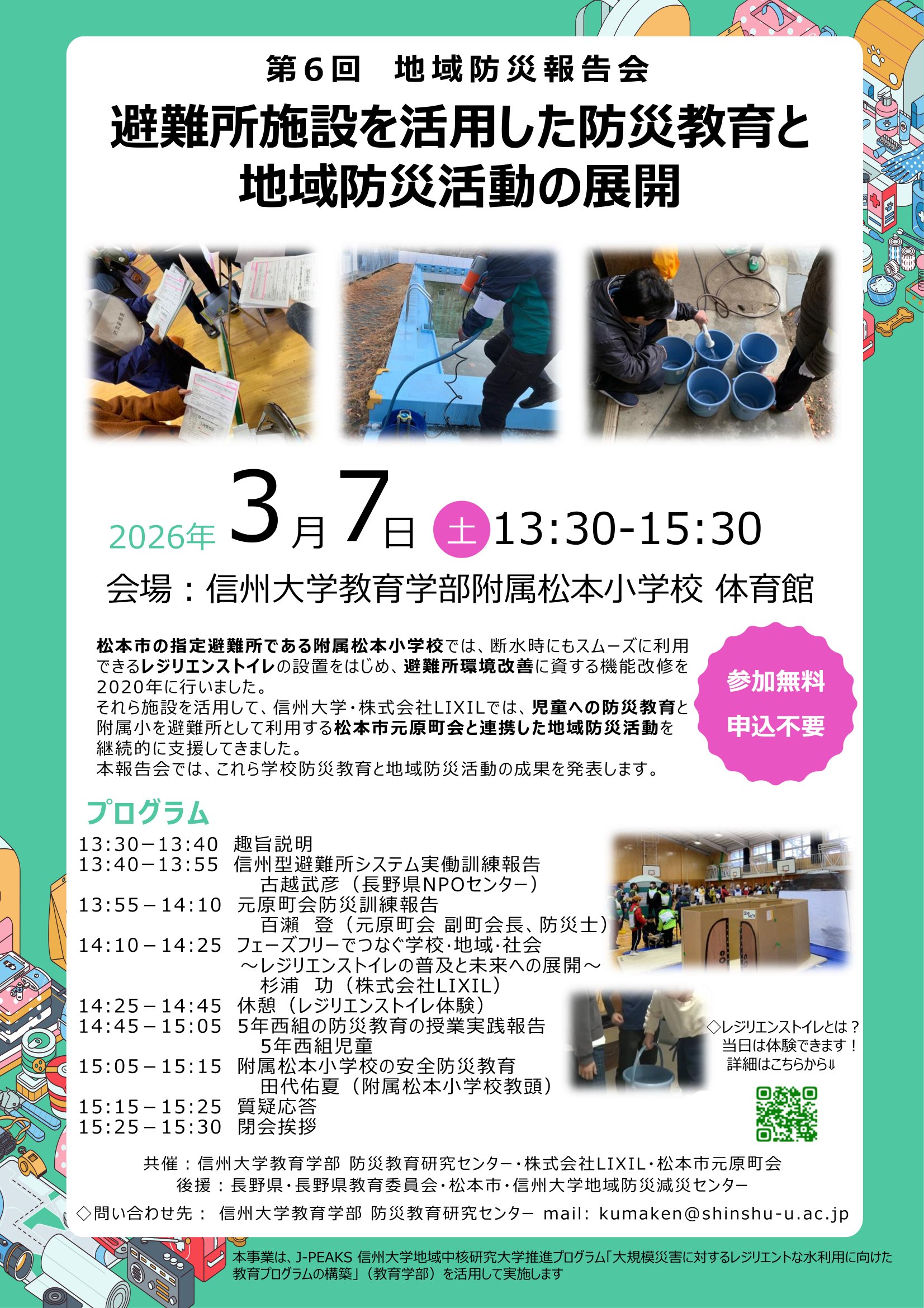 3月7日に避難所施設を活用した防災教育と地域防災活動の展開が開催されます。